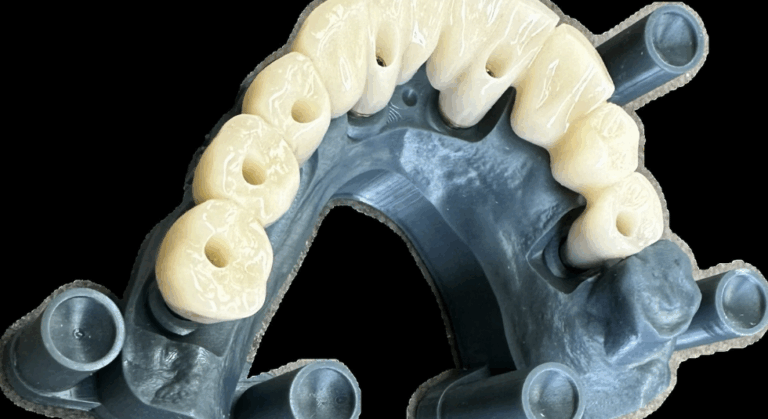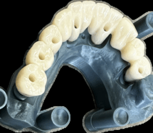 Transvissé ou scellé : Réalisable selon le protocole choisi, avec ajustement optimisé sur piliers multi-unit ou personnalisés.