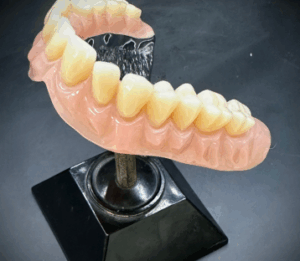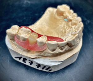 Le dentier partiel, ou prothèse amovible à châssis métallique, est une solution dentaire qui remplace plusieurs dents manquantes tout en s’appuyant sur une structure en métal fin et durable pour garantir solidité et confort.